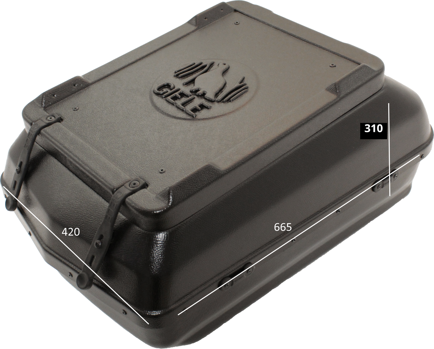 Giele packlåda till Lynx X-trim ( EJ RE) & Boondocker 3700 Rymmer 55 L. Remmar, fästen och nitar för montering ingår.