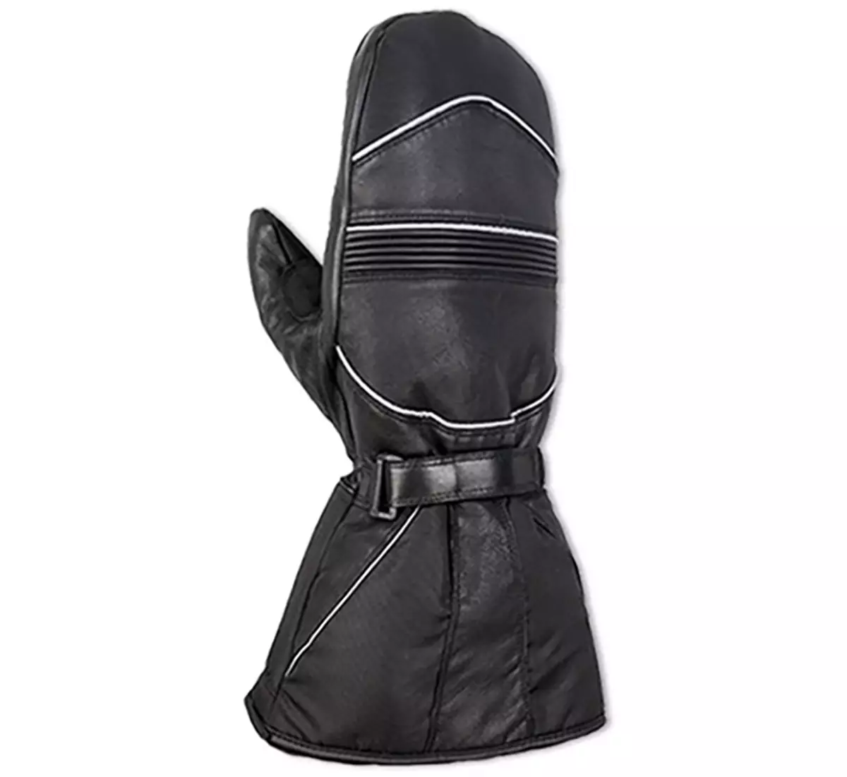 Skoterhandske av slitstark getnappa. Bälte och reflexdetaljer på handryggen. Handsken har löstagbart fleecefoder.
